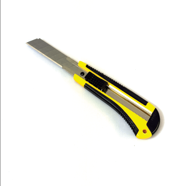 Exhibition Carpet Snap-Off Knife Auto Lock 18 mm is a high-quality professional snap-off knife specially designed for cutting exhibition carpets and other carpet materials. This knife is a preferred tool among exhibition carpet installers, enabling precise and clean cutting results during carpet installation.