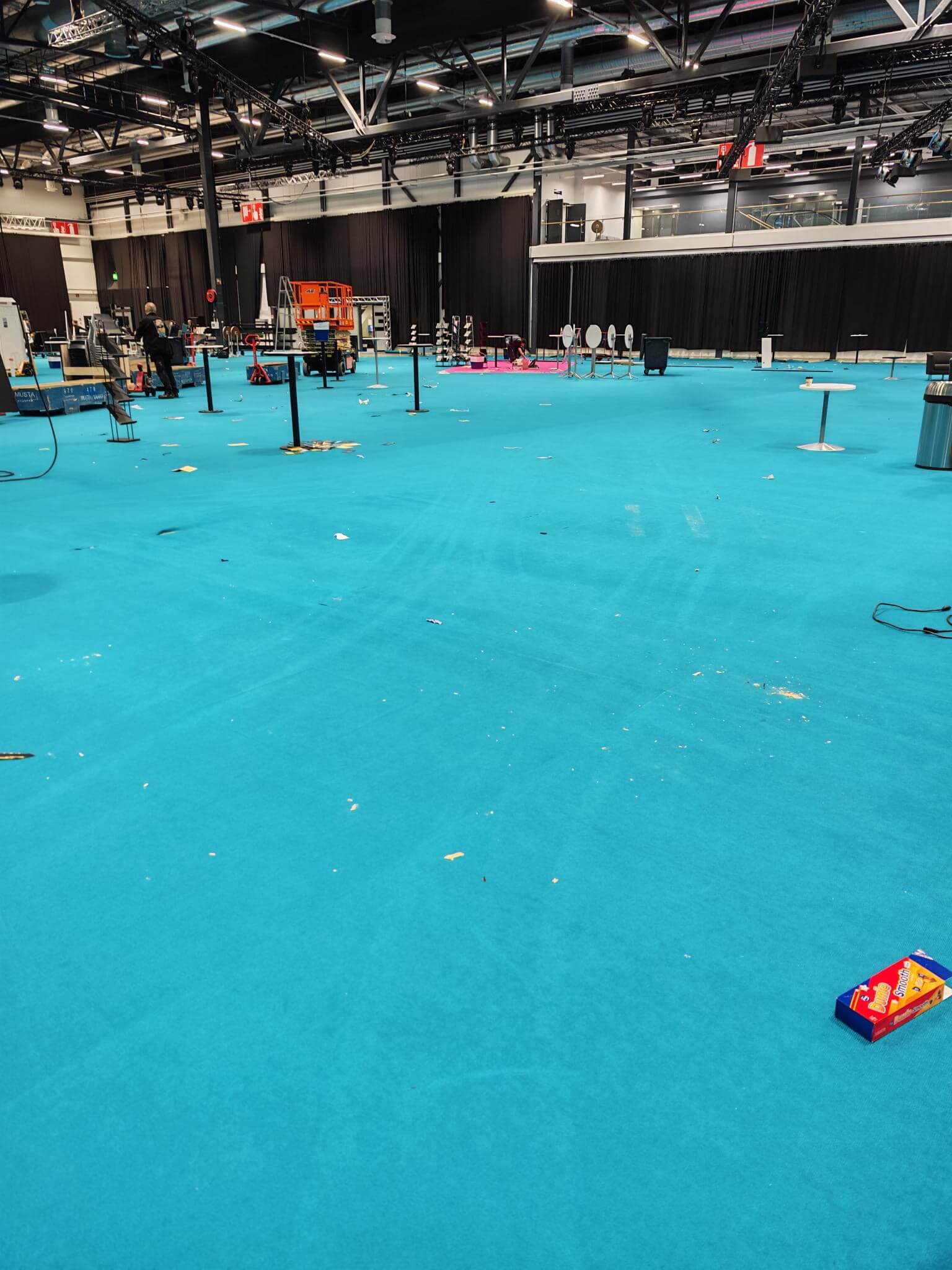 Käytetyt atollinsiniset messumatot ovat olleet vain yhdessä sisätapahtumassa. Messumatto on yleisilmeeltään siistiä, mutta siinä saattaa olla tapahtuman purun aikaisia jälkiä mm. trukin renkaista ja pumppukärryistä. Messumatto on ns. lievästi pintauritettua messumattoa